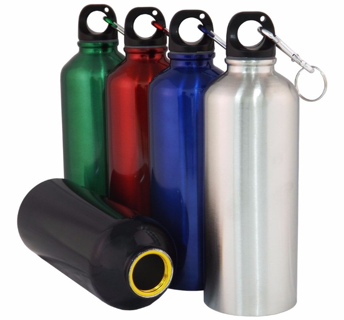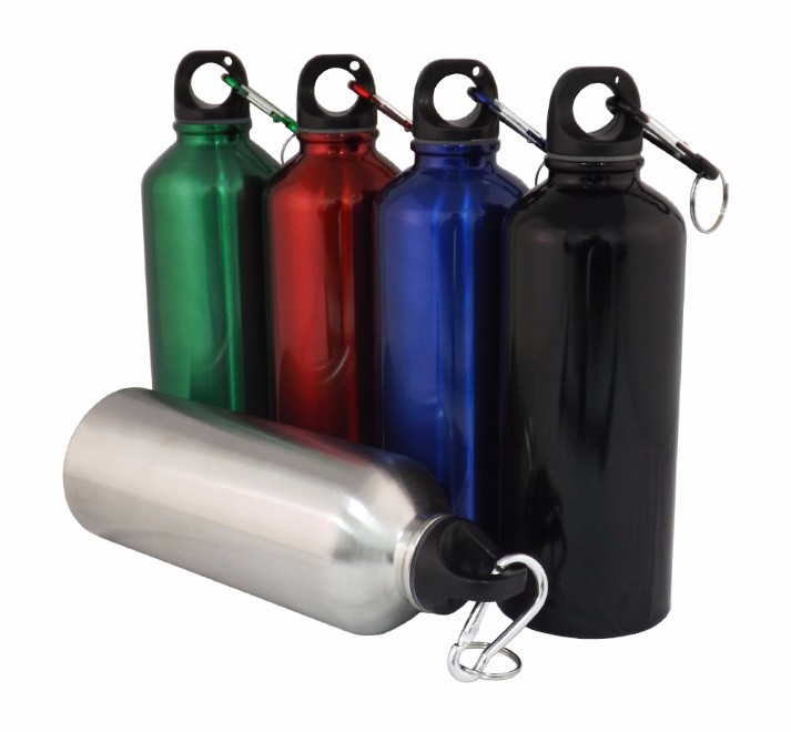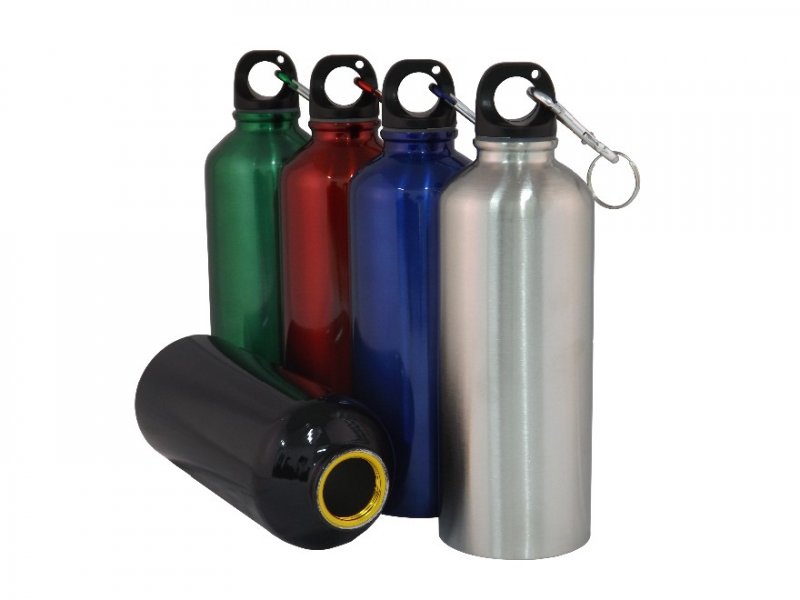 Squeeze de alumínio com mosquetão, capacidade para 500ml. Tamanho total (CxC): 20,8 cm x 20,4 cm Peso do produto: 110 g Quantidade de peças por caixa: 60 peças.