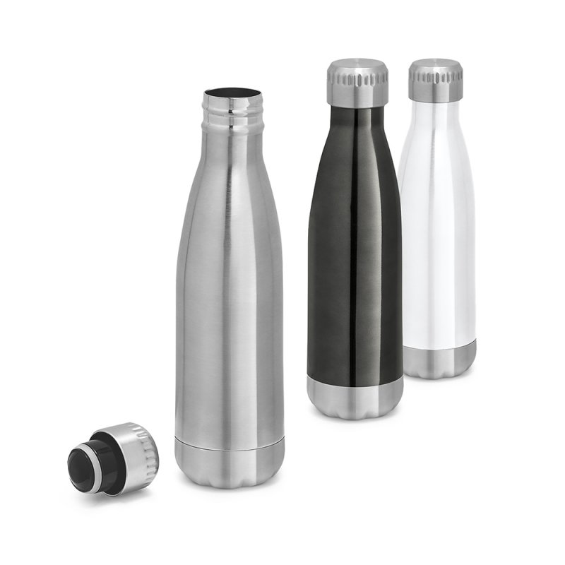 Garrafa térmica em aço inox com parede dupla e tampa com sistema de vácuo. Capacidade até 510 ml. Food grade. Com caixa branca 94657. ø67 x 255 mm