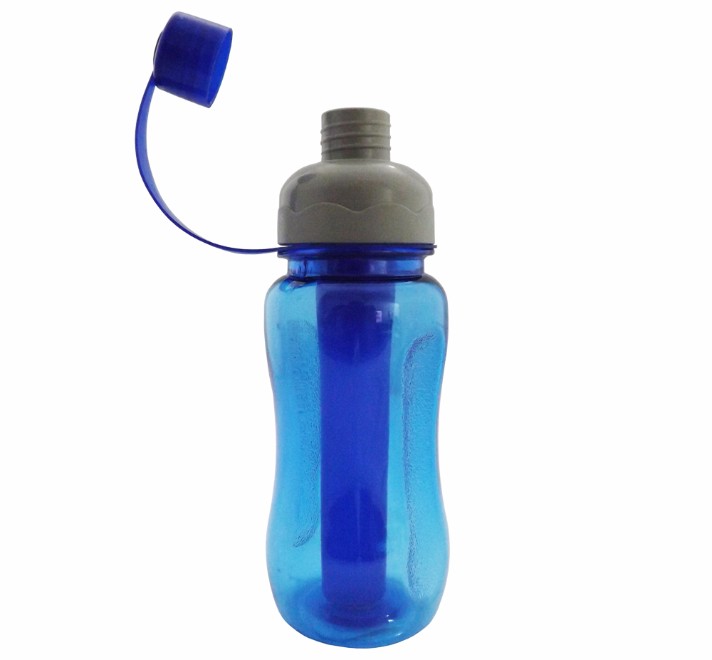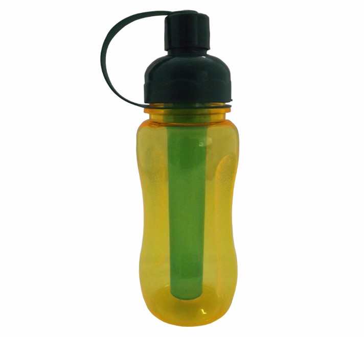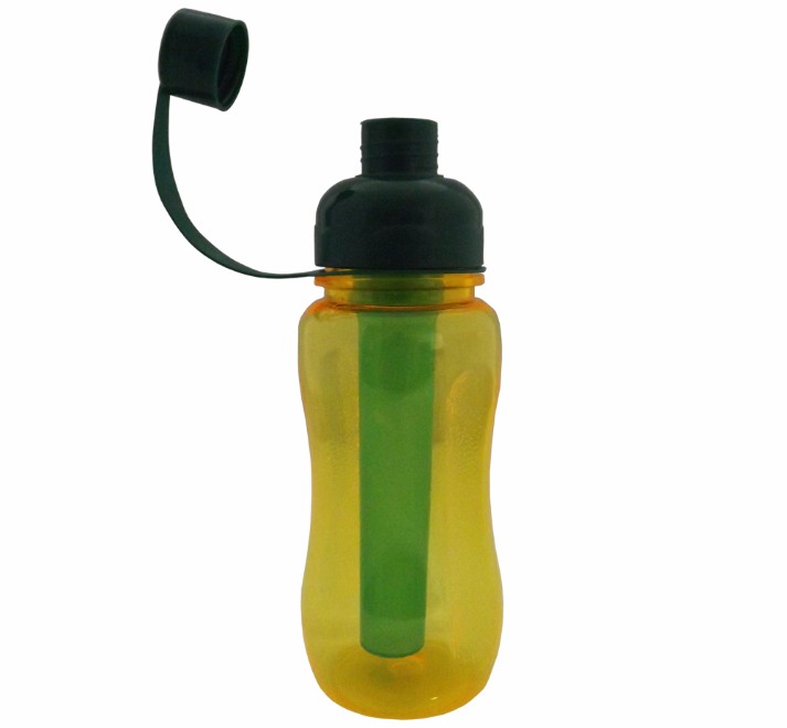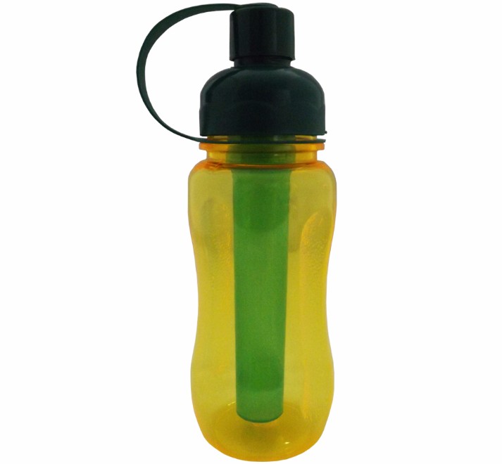 Squeeze Ice Bar de plástico resistente 400 ml, contendo parte interna removível para resfriamento (Não acompanha água). Detalhes no corpo e na tampa.
