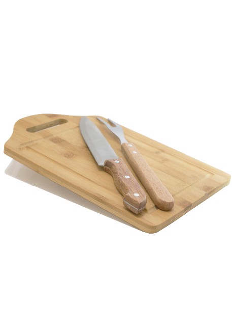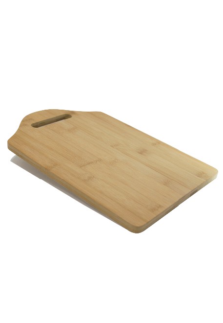 Tábua de bambu com canaleta e alça, simples e prática.