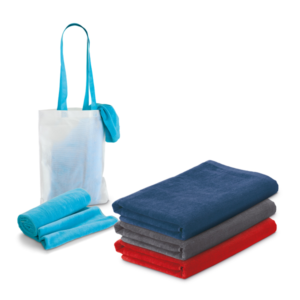 Toalha de praia. Veludo de algodão: 320 g/m². Fornecida com sacola em non-woven (80 g/m²). 1500 x 750 mm | Sacola: 330 x 415 x 100 mm